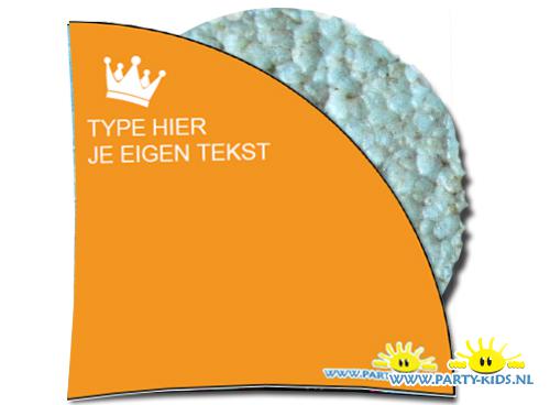 Een traktatie voor Koningsdag. Deze Koningsdag rijstwafel wikkel is leuk om uit te delen op de peuterspeelzaal of kinderdagverblijf. Open de werktekening en sla de pdf op. Open de pdf en type je eigen tekst in het vakje. Printen en knip maar uit. Vouw de wikkel dubbel en plak het plakrandje vast.